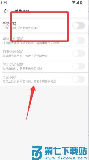 3、在设置中开启手势密码,下次打开应用需绘制正确图案才能查看已存取证内容。