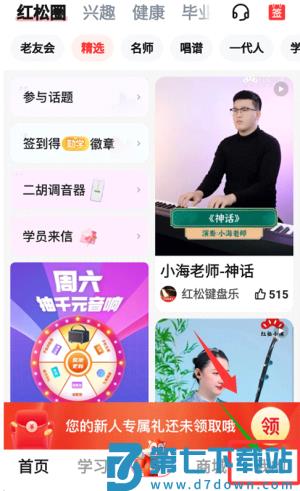1、打开我的app后先选择你感兴趣的领域,比如书法或声乐,系统会推荐相关的入门课程和老师。