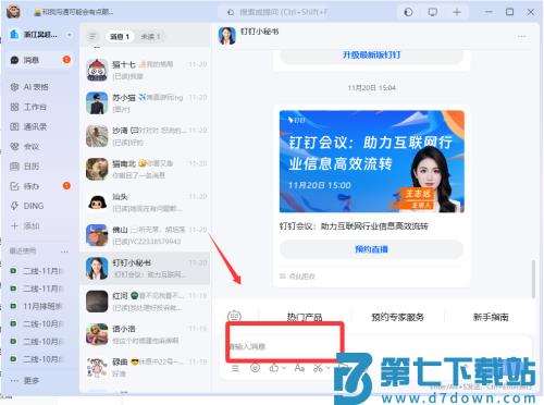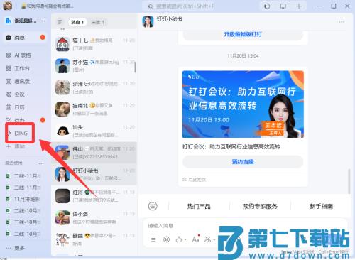 2、使用ding功能发送紧急通知,在消息界面长按加号选择ding,输入内容后选择电话或短信方式发送。