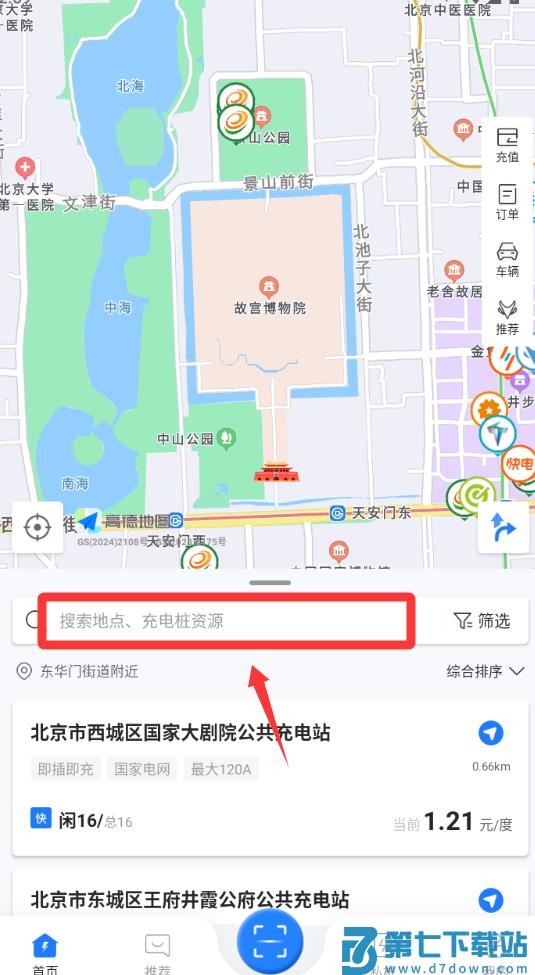 3、点击搜索栏里输入地点就可以搜索充电桩资源。