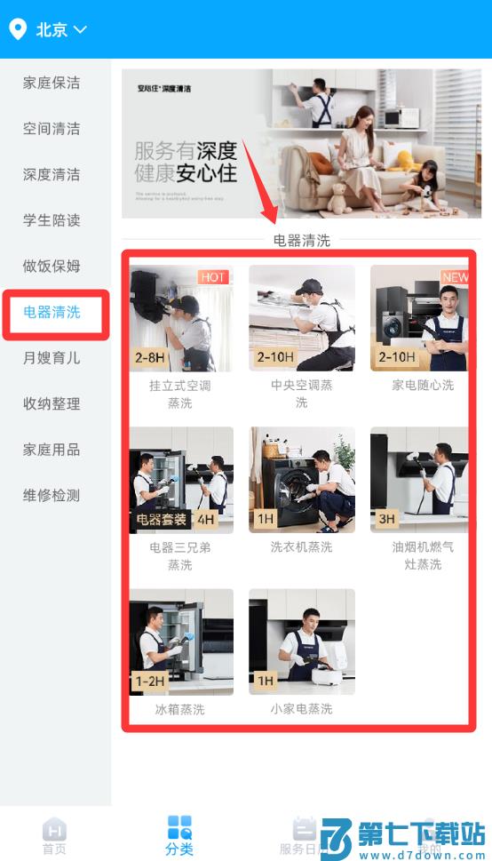 3、点击电器清洗然后回显示好多电器清洗。