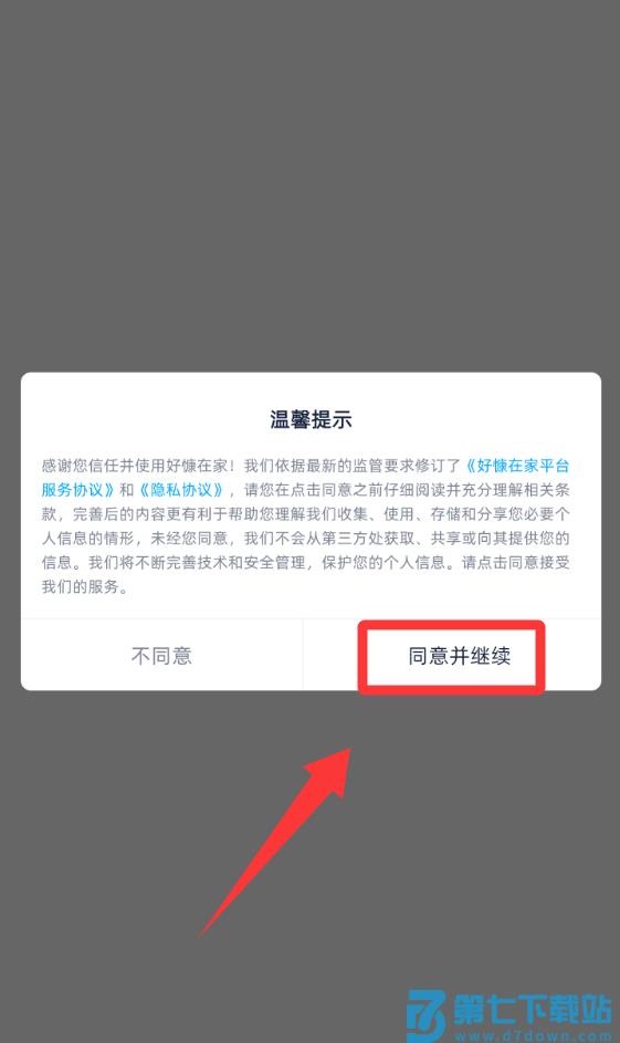 1、点击温馨提示里的同意并继续。