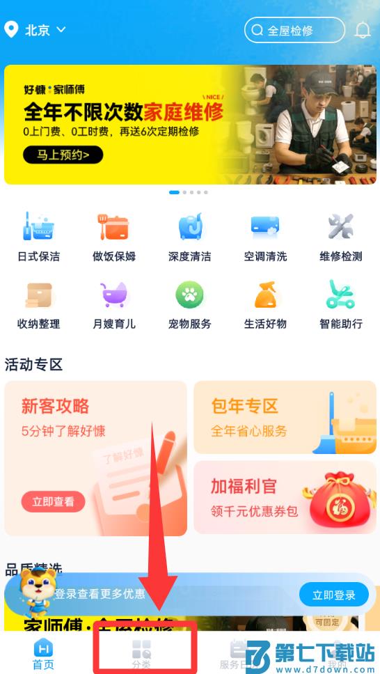 2、进入软件界面点击下面的分类。