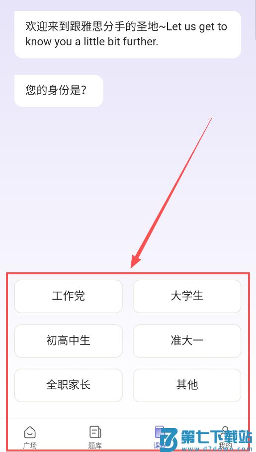 2、完成登录后系统会引导选择身份,根据自身情况在工作党、大学生、初高中生等选项里如实选择。