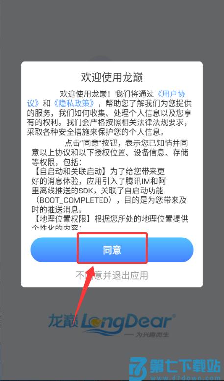 1、于欢迎界面点击同意按钮,确认协议权限后进入应用启动页。