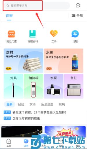 3、通过主界面搜索框输入圈子名称,查找相关锦鲤交流内容。