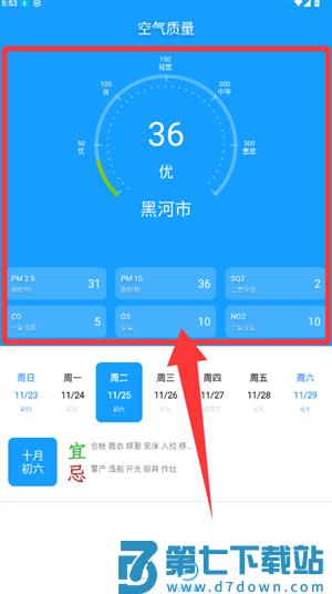 3、切换至空气质量板块,查看各项污染物具体数值。