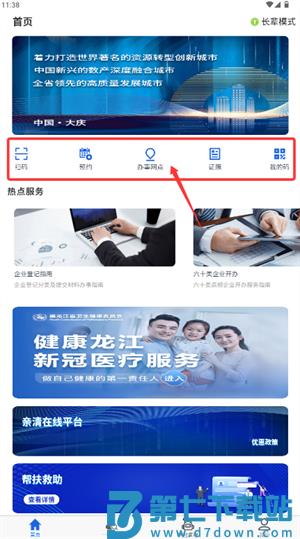 1、下载后打开App完成注册和登录,进入首页就能看到各种服务分类,比如医疗卫生和证件办理,找到你需要办的事情。