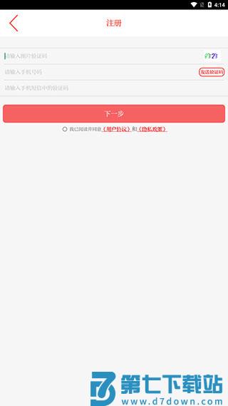 ·依次输入图片验证码、手机号、短信验证码,然后勾选同意协议,点击【下一步】。