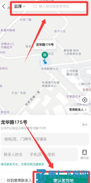 3、顶部搜索目的地选择好点击底部的确认装货地。