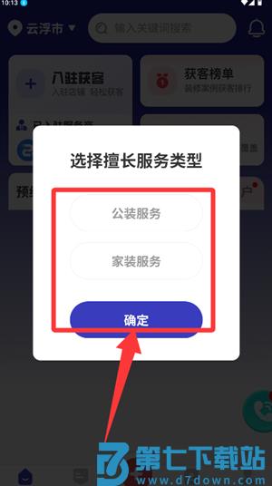 2、选定城市后,根据需求选择公装或家装服务类型并确认。