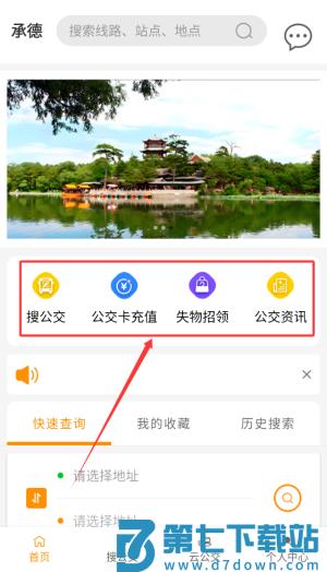 3、首页设有公交查询、卡片充值及失物找寻等日常出行服务功能。