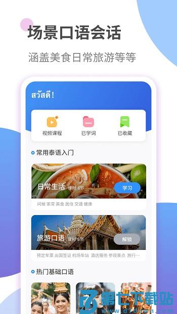 泰语趣学习app一款学习泰语的软件,有着各种语法,单词教学,学习起来非常的方便,帮助有需要的用户快速的提高泰语水平,还有着视频,翻译,词典等功能,非常的好用,有需要的话就快来下载吧。