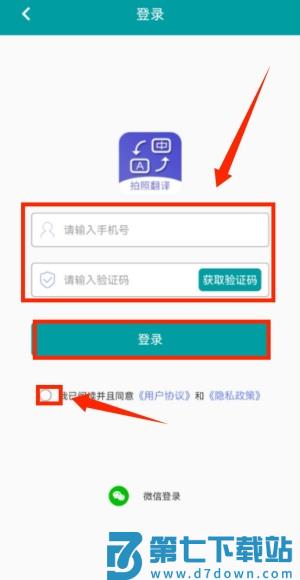 3、输入手机号码获取验证码进行登录。