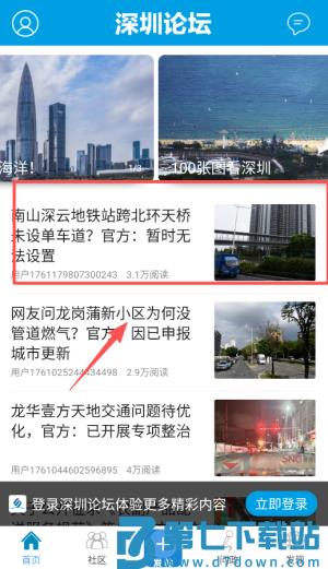 1、下载并打开深圳论坛App完成注册登录后可以先浏览首页的新闻资讯和政务动态了解最新城市信息。