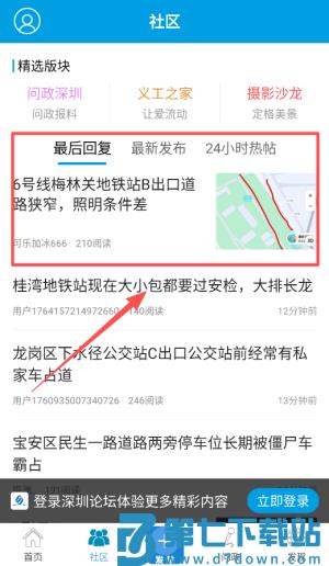 3、在深圳事板块发布帖子记录生活点滴或城市见闻也可以浏览他人分享结交兴趣相投的朋友交流互动。