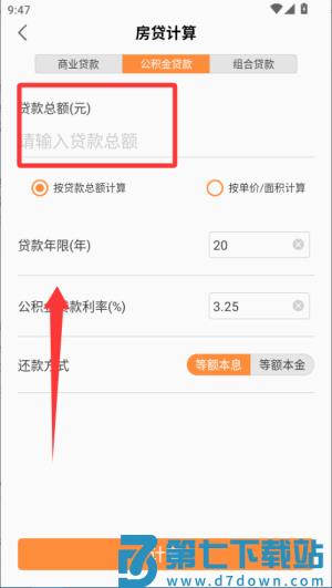2、进入房贷计算器,输入贷款金额、年限和利率,自动生成月供明细和利息总额。
