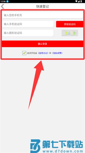 1、进入快速登记页,填写手机号与双重验证码完成登录。