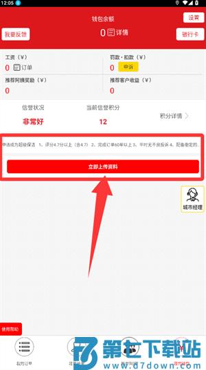 2、登录成功后,在账户余额页面点击立即上传资料。