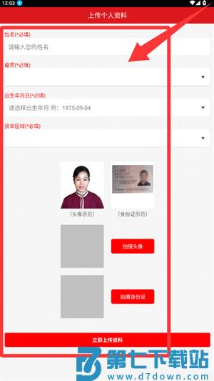 3、根据页面提示填写个人信息,拍摄上传头像及身份证照片后提交。