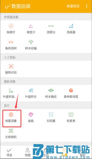 1、在数图田调工具板块选择地图测量,进入操作界面。