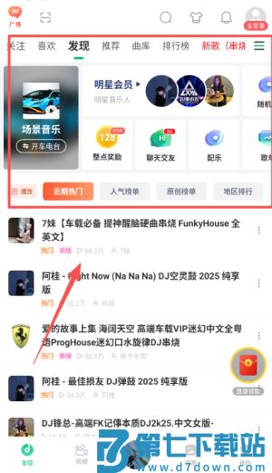 2、在顶部搜索栏输入艺人或曲名,比如搜索“百大DJ”或“电子音乐”,也能按风格筛选浩室、迷幻等类型。