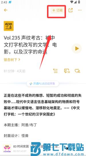 3、找到感兴趣的节目后点击右上角“订阅”,之后更新会自动出现在“我的播客”里。