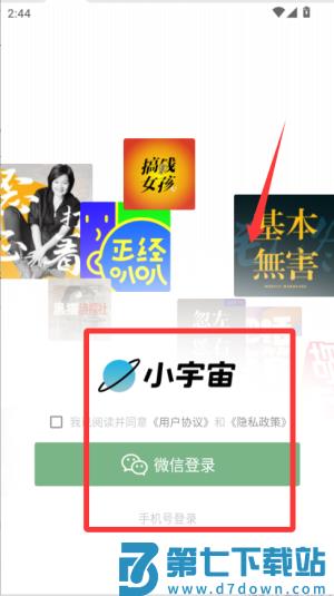 1、打开小宇宙app后,先通过微信或手机号登录,进入主界面开始探索播客内容。