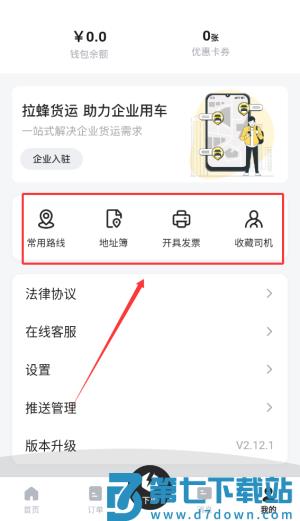 4、个人中心包含常用路线管理、发票申请及司机收藏等个性化设置。