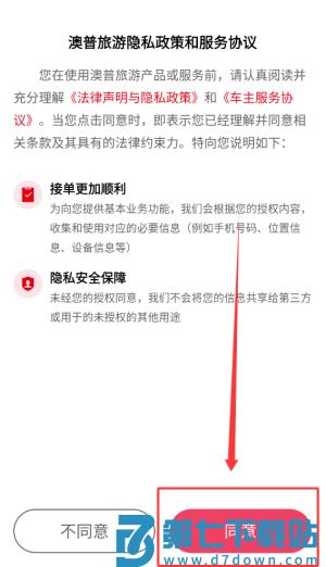 1、仔细阅读并确认平台服务条款后,系统将自动进入司机加盟应用的主功能操作界面开始使用。