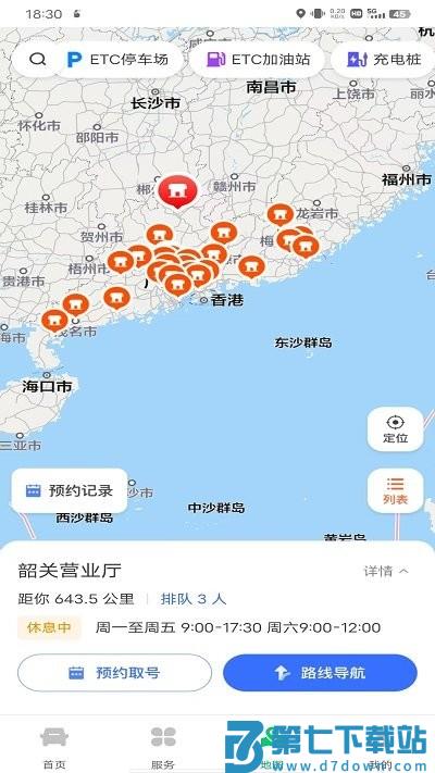 3、在地图栏目,为用户提供了粤通卡营业厅,etc停车场,etc加油站,充电桩,etc高速服务点,高速事件等
