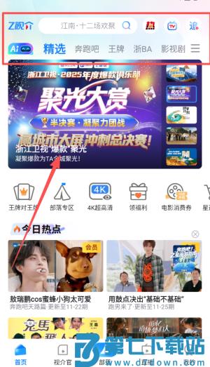 2、进入首页后浏览推荐内容 也可以通过顶部搜索框直接查找 输入综艺或电视剧名称就能找到相应资源。