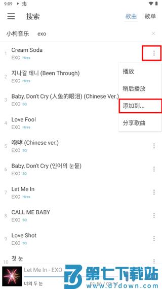 1、点击歌曲后更多图标,点击添加到