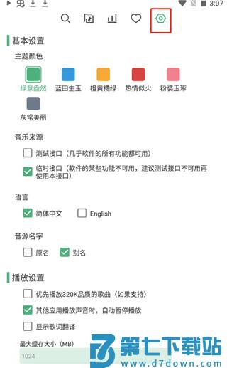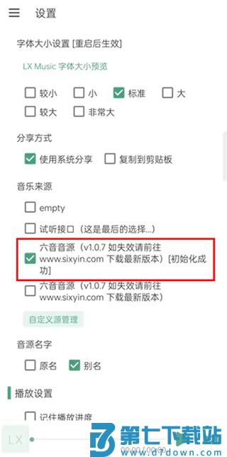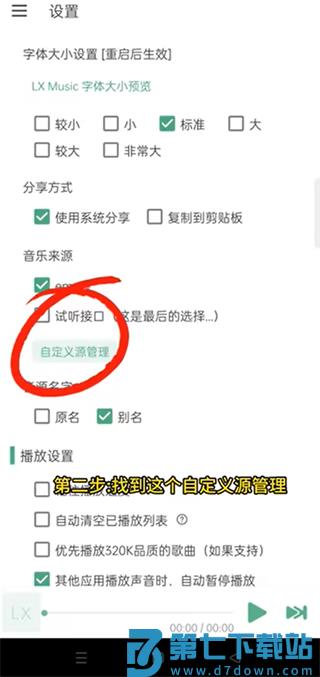 3、在“设置”页面,找到“音乐来源-自定义源管理”