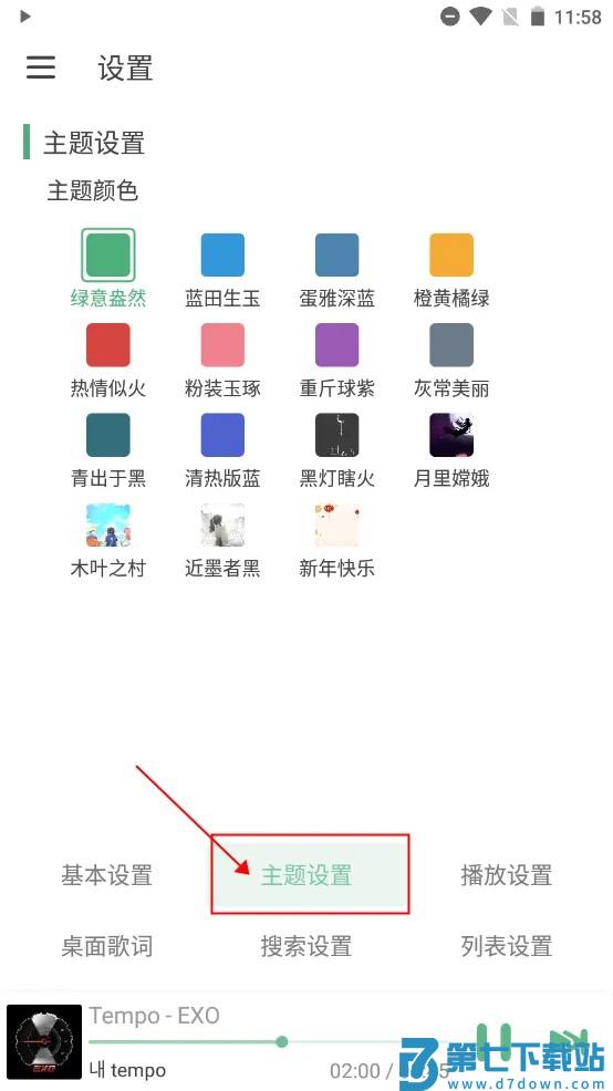 3、找到“主题设置”,然后选择自己喜欢的主题即可。