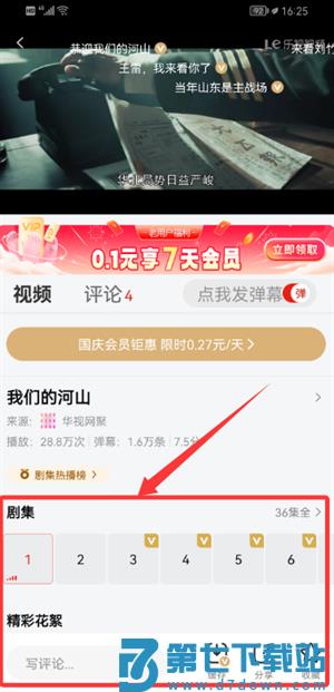 4、进入剧集播放页可选择单集观看,支持下载与加入收藏列表。
