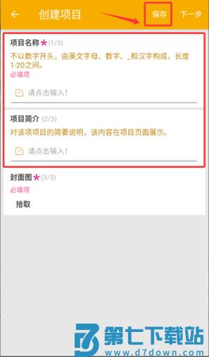 2、点击右上角新建项目按钮,跳转至信息填写页面。