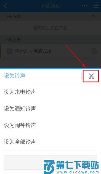 第四步。点击【选择铃声】旁的【剪刀】标志,如图所示。