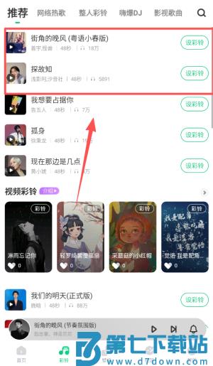 1、打开酷狗铃声app在首页或搜索栏找到你喜欢的音乐直接点击下载即可获取到本地铃声库。