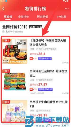 2、浏览热卖榜等分类商品,查看具体优惠价格。