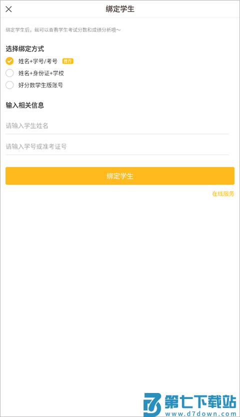 PS:这儿的学号和学籍号是指校园教师导入到好分数体系里面的学号,若无法绑定,请联系校园教师获取正确学号进去绑定