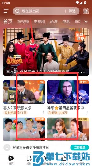 1、下载安装腾讯视频最新版后,打开app即可在首页看到热门剧集和综艺推荐,点击就能直接播放。