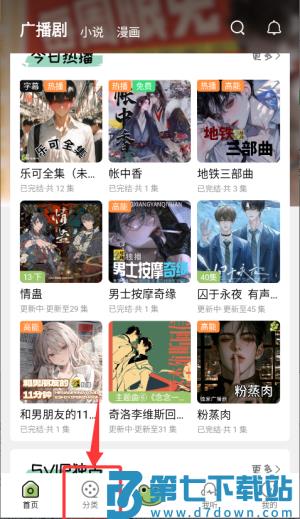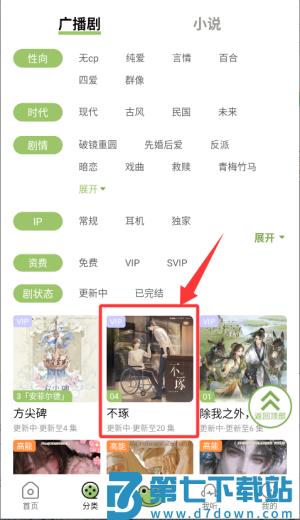 2、进入主界面选择分类选项,进入广播剧筛选页面。