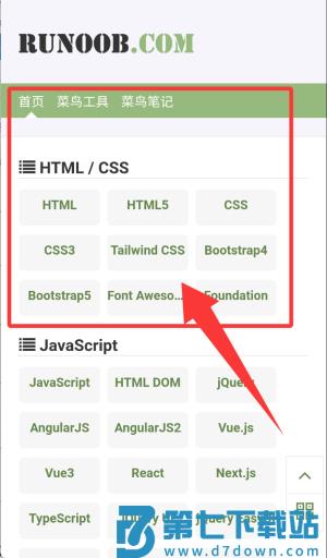 4、涵盖HTML教程、CSS教程、Javascript教程等教程信息