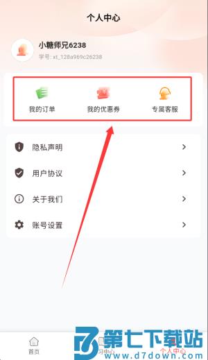 4、个人中心设有完整的订单管理系统、优惠券使用页面以及专属客户服务通道等功能模块。
