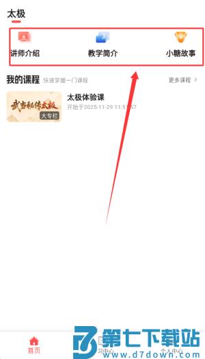 3、首页区域展示教师资质介绍、课程详细说明以及学员学习心得等丰富的教学辅助内容。