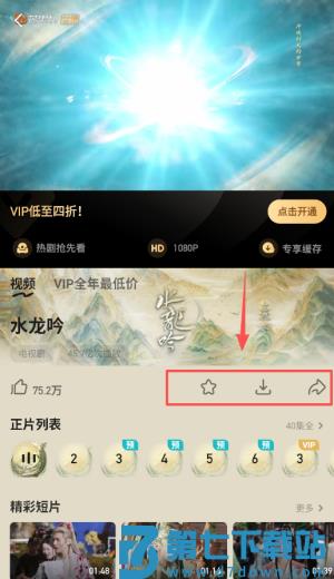 3、选择视频进入播放页,可自由切换清晰度与字幕语言并点击下载图标缓存至本地。
