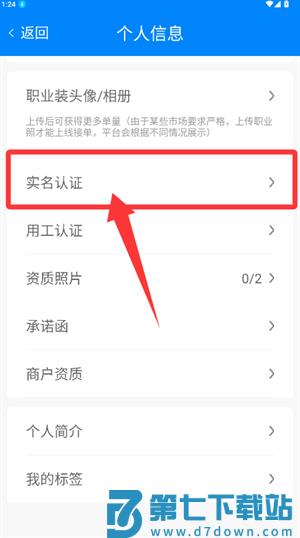2、在界面中选择实名认证功能,跳转至信息填写页。