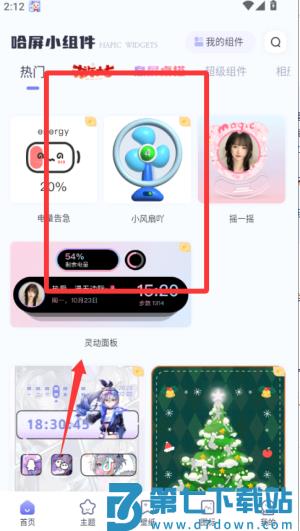 1、打开哈屏小组件app后,首页会展示各类时钟、天气、日历等实用组件供选择。