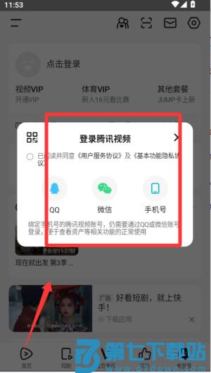 1、打开腾讯视频APP后,先注册或登录账号,这样能同步观看记录和收藏内容。